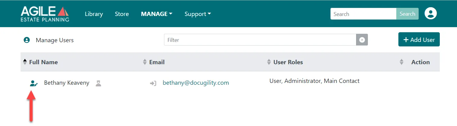Firm Administrators can manage user access and permissions within Agile EP. This includes editing a user’s role, adjusting permissions, or removing a user from the account.