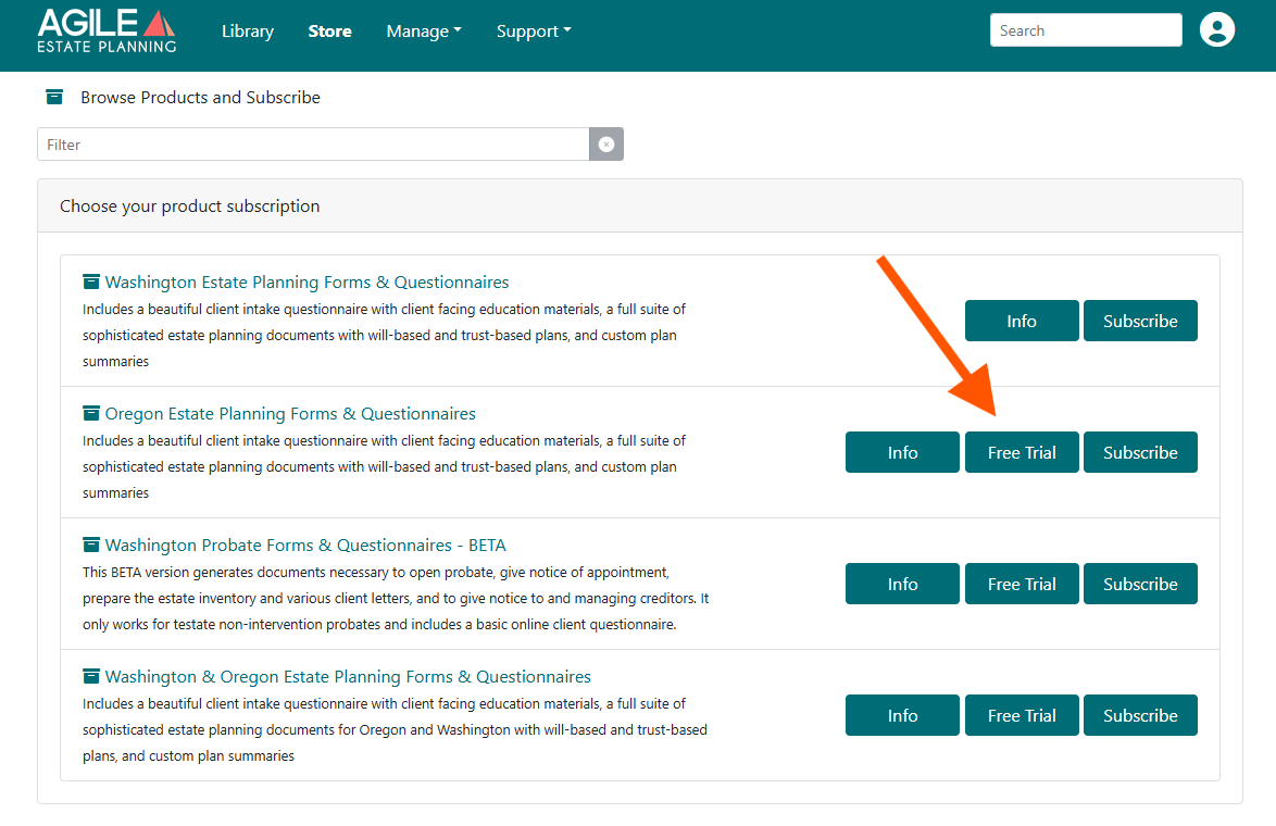 If the Free Trial option appears next to a product in the Store, that trial is available to you. If it does not appear, the trial for that product has already been used.