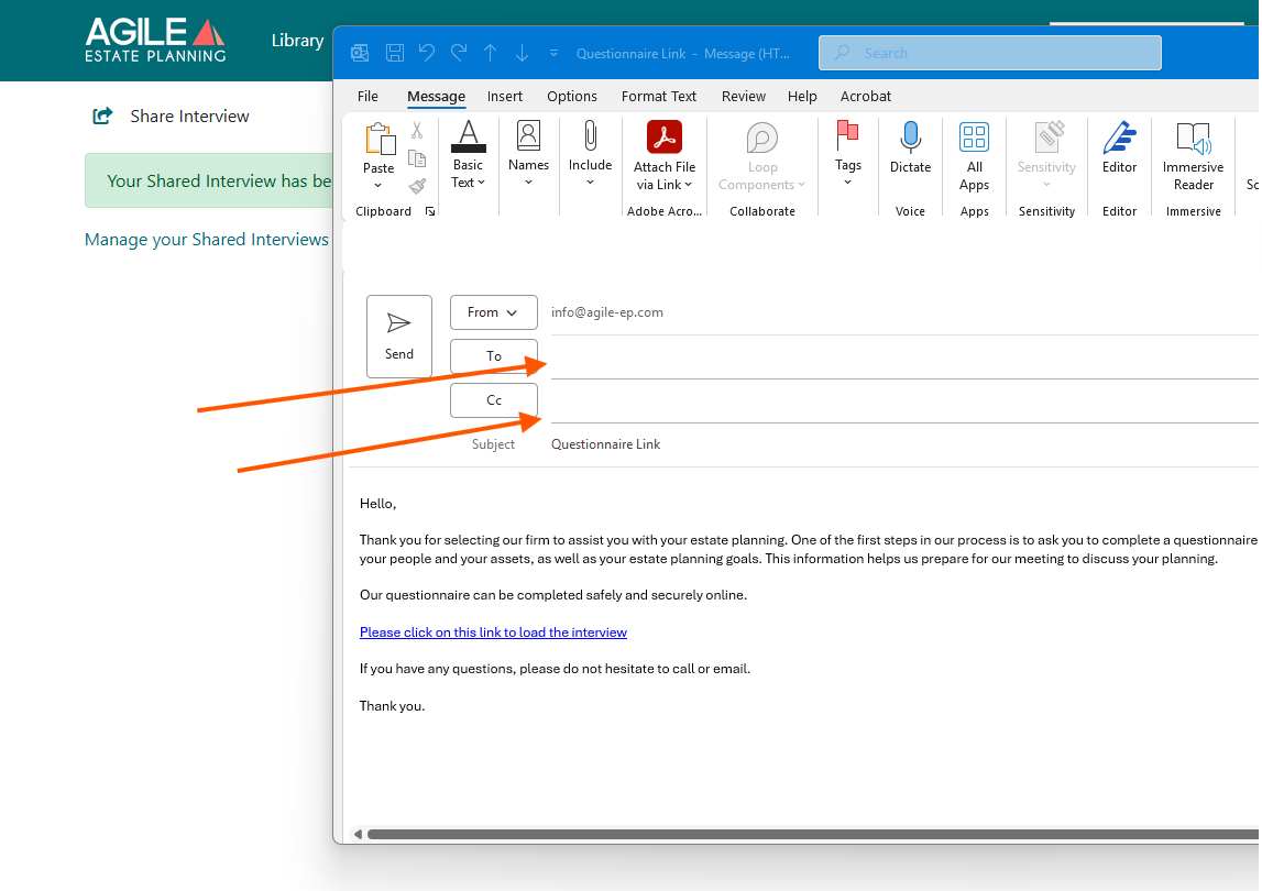 The sender can add another email address when sending the questionnaire via Outlook and manually adding another recipient to the email.