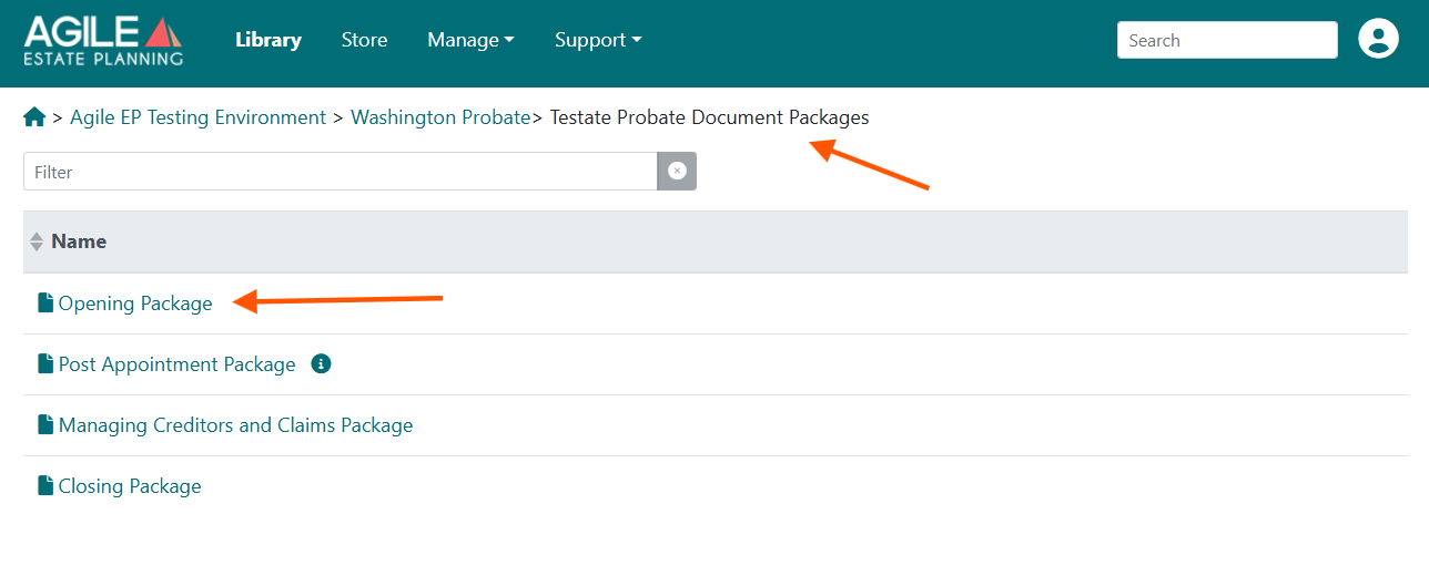 - Click Testate Probate Document Packages.